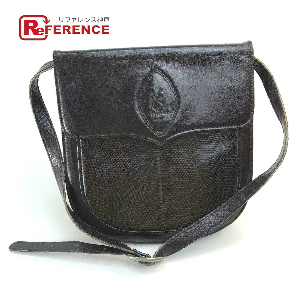 YVES SAINT LAURENT イヴ・サンローラン スタッズ ポシェット ショルダーバッグ レザー レディース ブラック×シルバー金具 【中古】